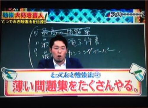 <Twitterコラム> ◇先日「アメトーク」の「勉強大好き芸人」を見てたら、こんなシーンがあったんですね。受験勉強法としての「薄い問題集をたくさんやる」。この解釈の仕方はいろいろありますが、その中のひとつが 「小さな達成感を積み上げる」 ではないか…